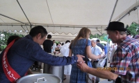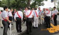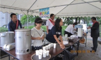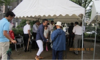 テント3張りと8テーブル、椅子50脚、それにかき氷を作る機械、材料等を用意し、ロータリアン自らがお声掛けをし、冷たいお茶とかき氷を無料でお配りし参列者の方々にお休みになって頂いた。