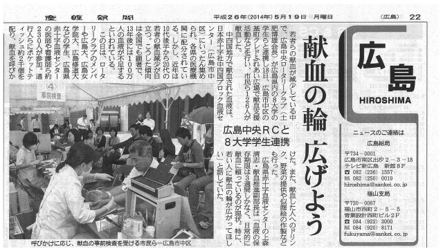 中国新聞、産経新聞に活動記事が掲載されましたのでご紹介します。