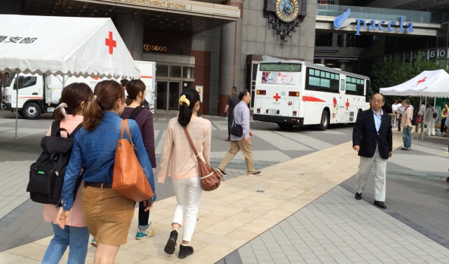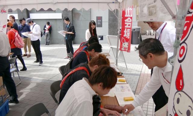 昨年までは、献血受付、バス誘導、声掛けを分担したが、今回はイベント広場が新たに設けられ、各コーナーに学生リーダーを配置するなど、分担が拡がり、配置表を作成し対応した。