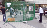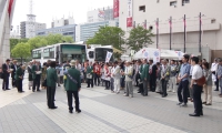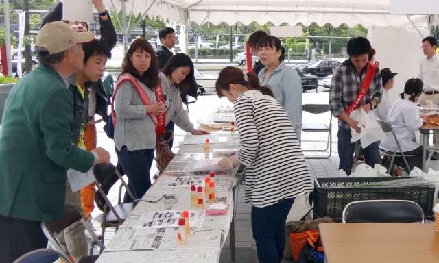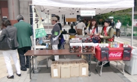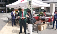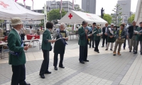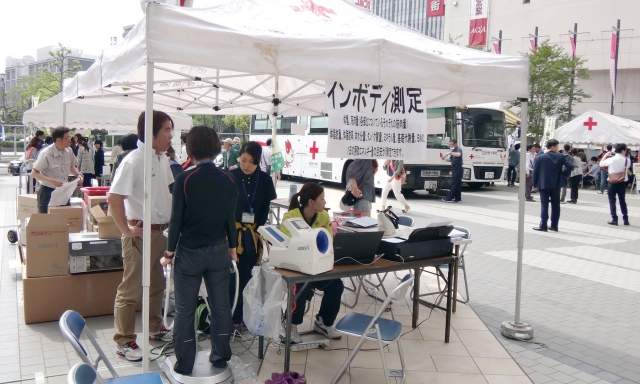 午前8:00 当日の朝は晴れ気温はすでに20度を超し、最高気温は30度を超えるとの予報の中準備が始まった。日赤血液センターからは、献血車2台分の受付準備のテント備品が運び込まれ、イベントコーナーには、野菜、クッキー、スポーツ用具、飲み物が次々と運び込まれ開会式に向けて準備が始まった。