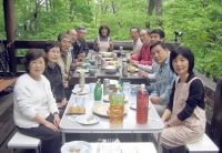 ロンガルス同好会は、河野隆会員の別荘で聖湖畔の新緑を楽しみながら、美味しい料理?とワインとスケッチを楽しんだ。当日は午前中からあいにくの雨。しかし、ランチタイムになりデッキに用意を始めるとなんと、雨は止み食事の間は実に爽やかな一時だったのです。