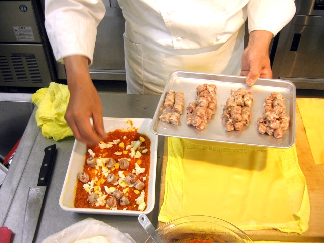 時間の関係で、トマトソースと生パスタは準備していただいた。今後はリコッタチーズ同様自分たちで実習をしましょう。
