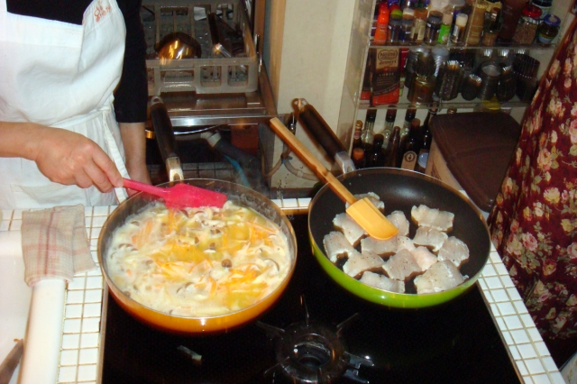 途中でデジカメの電池がなくなり残念ながらここまで。完成した料理の試食レポートが出来なく、残念。次回は万全の準備で・・と反省しています。