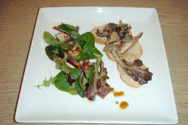 前菜のサラダと、きのこのソテーです。