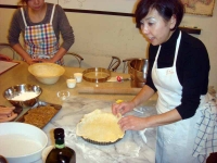 本来、お菓子作りが得意な講師は、分かりやすくパイ生地の作り方や、ケーキ生地の作り方を指導。生地の弾き方や拘りの手順を分かりやすく指導。