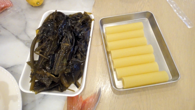 蒸し料理に使うワカメと、詰め料理に使うカネロニ