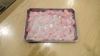 1.白身魚に塩・コショウをして、ベーコンで堤糸で結ぶ。