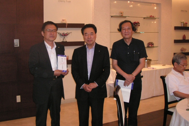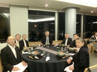 ロンガルス絵画同好会作品展開催10周年を目前に控え、会員の親睦と更なる結束を目的とした懇親会が開催された。田原同好会会長の挨拶に始まり河野本年度会長の乾杯で幕を開けた。グランドプリンスホテル広島(なだ万)の食事とお酒を楽しみながら、想い出話や作品展の要綱、作品集の製作などの協議、更には上原会員の芸術論と話題は尽きない・・・藤村幹事の〆で懇親会は閉会の運びとなった。