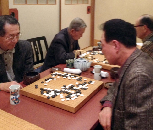 11月17日(土)恒例の囲碁同好会が正弁丹吾で開催された。今回は、いろいろな催しと開催日が重なり、出席者はいつもほどではなかったが、徳見会員の初参加もあり、大いに盛り上がった。徳見会員の実力は従来の会員も無視できない実力の持ち主と見受けられた。優勝は、決勝戦の結果、迫田会員が山村会員を破り、久しぶりの優勝であった。懇親会も大いに盛り上がった。