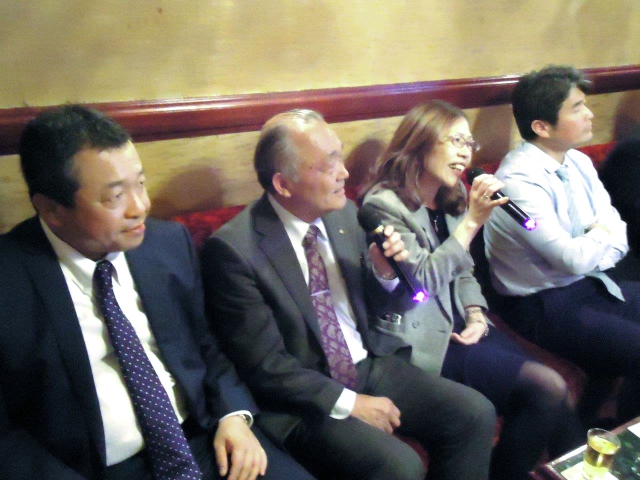 池田会員が入会後初めて参加され、お得意の「よせばいいのに」を熱唱され、「素晴らしい」、「声が本物みたいだ」と絶賛を受けておられました。また鳥井会員は、広島の夜の歌がお上手で、こちらも喝采を浴びておられました。会の楽しい雰囲気は写真でご覧ください。