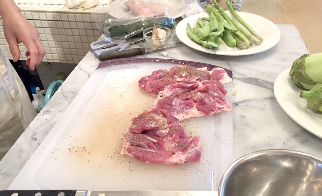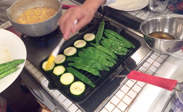 6月料理研究会テーマは、「鴨肉のグリル」と、夏野菜をふんだんに使った4品を作ります。