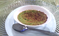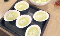 ミキサーに、材料・生クリーム・卵・バジルを加え撹拌。