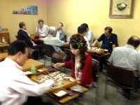 大会では、前回から参加の城南ロータリーの紅一点・坂井増由美会員の囲碁力に杉本会員はじめ多くの会員はたじたじでした(写真)。