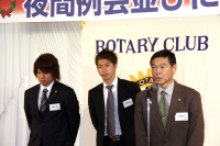 今年もサンフレッチェから、高田豊治常務取締役、森崎浩司選手、高柳一誠選手が参加していただいた。高田常務から我々中央RCのサンフレッチェ観戦で3:0の得点差を付けて勝利したことを大変喜んで頂き、来年は2~3回の観戦をお願いされた。
