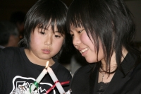 例会終了後、クリスマス家族会のオープニングが子供達のキャンドルサービスで始まった。それぞれのキャンドルに灯がともると“きよしこの夜”を全員で合唱した。