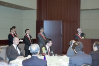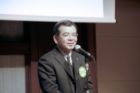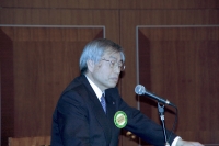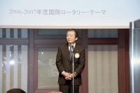 例会が点鐘でしめくくられ、懇親会開会の挨拶は中央RCの緒方俊平会長。