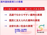 「より身近で,速くて,頼りがいのある司法」を目指す裁判員制度の意義の重要性を十分ご理解いただいたと思います。