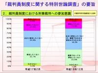 これを,「参加してもよい」と捉えるのか,「参加したくない」と捉えるのかによって,国民の皆様の刑事裁判への参加意識が前向きであるかどうかの評価が異なってくるわけですが,いずれにしても,「義務であっても参加したくない」又は「わからない」の消極派を含めて,私たちは,今後,裁判員制度の中身を幅広く1人でも多くの国民の皆様方へお伝えしていかなければならないと考えております。