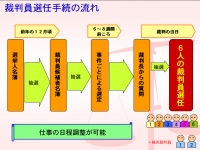 このように,休暇を取りやすくするため,仕事の日程調整に必要な期間を設けて,前もってお知らせするなど,裁判員として参加しやすい手続を採ることにしております。