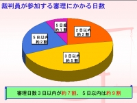 このように審理を無駄なく,集中的に行うことになりますので,裁判員裁判の審理日数は,3日以内で終わるのが約7割,更に5日以内に終わるものも含めると約9割になると,試算されているのです。