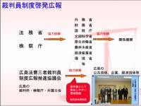 ここ広島県においても,広島の裁判所,検察庁,弁護士会で組織する「広島法曹三者裁判員制度広報推進協議会」では,これまで公開模擬裁判やフォーラムなど様々な形で裁判員制度の啓発広報に努めてまいりました。