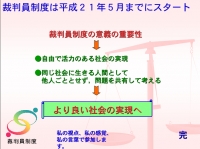 裁判員制度がうまく機能すれば,自由で活力のある社会が実現でき,また,同じ社会に生きる人間として他人ごととせず,問題を共有して考えることのできる国民意識が定着すれば,きっとより良い司法・社会になるものと期待しています。