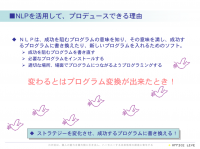 NLPが効果的な理由は、リ・プログラミングの方法が実践的、具体的提供できるからである