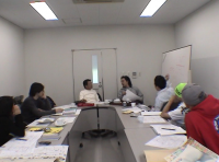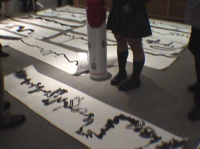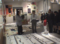 熊野高校芸術科の生徒を迎え、専門家アーティストとのワークショップを開催した。テーマは自分の生き様を筆で自由に描こうというもの。まだ17才前後の高校生は自分の将来を考えて自分の一生を描き出していた。その作品から細かい生き様を考え大胆に発想していくワークショップに大きな目標を得るこことが出来たようだ。