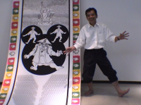 会場では、墨絵を実演しながら展示した作品にたいする思いなどを説明した。展示した墨絵は、ミラノの教会に伝わる宗教画に通じるものがあると絶賛を受け、一つの方向性を確信した個展になった。