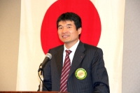 本日の紅一点永田富惠君。テーマは「茶道は、さどうから、ちゃどうへ」