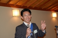 「乾杯」みんな応援すると、大きな声で杯を挙げ懇親会に。しばらく懇談を・・・
