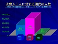 平成18年(2006年)の総人口は1億2777万人。これに対して法曹人口は,裁判官2575人,検察官1591人,弁護士2万2021人の合計2万6187人で,法曹一人当たりの国民数は4880人。裁判官一人当たりでは約5万人,検察官一人当たりでは約8万人,弁護士一人当たりでは約5800人。