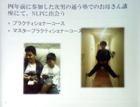 NLPに出会ってから、この四年間での変化は自分でも驚きです!次男の学習塾のお母さん講座にて初体験し、嫌がる受験勉強を無理に続けさせることを止め、半年間思いっきり次男は遊びました。六年生の五月になって、『そろそろ僕も勉強しようかなあ…』親の私は毎月東京へのセミナー通いをしながら、結果は本人の志望校に入ることができました。中学受験の常識は…親も趣味や役員は止めて、受験勉強をする!なのです。今では、長男のスパルタ英才教育を反省しております。^_^;