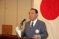 さて、私の健康法についてお話しさせて頂きます。先ず私は好きなゴルフもやめまして、趣味といたしまして歌を唄うことを唯一の楽しみにし、健康法だと思っております。そして毎日十曲から十五曲唄っております。歌は唄うことも聞くことも体のために非常に良く、特に歌の好きな人が集まり、共に唄い共に聞くことが良いと思います。半年前よりわが広島中央ロータリークラブに音楽同好会が発足し大変喜んでいます。