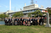 見学の終了後には、RCCの社屋を背景に、出席会員全員で訪問記念写真を撮りました。