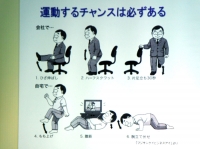 次に運動療法は、そのために時間をとってするというのでは長続きしにくい。日常生活の中でなるべく歩くことや、仕事の休憩時間に、自宅でテレビを見ながら、といった機会を利用して、活動の量を増やすことが望ましい。またこの機会に自宅で眠っている運動器具を活用してみるのもよいのではないだろうか。