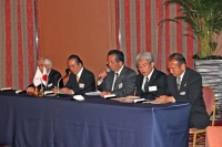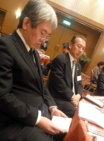 懇親会・歓迎会にR情報からRソングについての説明を聞きながら、手帳で確認をする副幹事のお二人。日頃気が付かなかったことを発見したようです。まだアルコールは入ってません。いたって真面目な時間帯です。次回の例会で発見事実をお知らせ下さい。