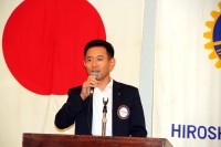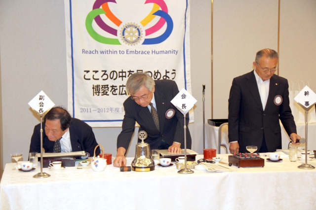 まだロータリー歴1年3ヶ月余り,年齢も若輩者でございますので,諸先輩方のお支えがない限りはとても任務が務まらないのではないかと思っておりますが,ご指導ご鞭撻を賜りまして,1年間何とか任務を果たしたいと思っておりますので,よろしくお願い申し上げます。