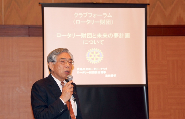 世の中の種々の問題を少しでもなくすために、会員各位には、どうかロータリー財団をご理解頂き、誇りを持って積極的に活動に参加していただきたいと思います。