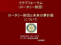 ロータリー財団月間にちなみ、未来の夢計画について説明させていただきたいと思います。