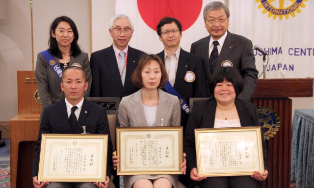 奉仕プロジェクト委員会では、3名の優良従業員表を行った。日本赤十字社 中四国ブロック血液センター 看護師 岡村 弘子 様医療法人 せのがわ 精神保健福祉士 長和 洋光 )様広島市総合リハビリテーションセンター 作業療法士 松原 麻子 様