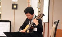徳武正和氏のプロフィール 1965年広島生まれ 1993年9月 読売新聞社主催第26回ギターコンクールで優勝 1999年11月 第45回九州ギターコンクール優勝 フランス・スペイン・イタリアなどの音楽祭、講習会等に参加。広島交響楽団などとの共演、広島を中心に活躍しているクラシックギター奏者卓話の時間では、ゴッドファーザー、オペラ座の怪人など映画音楽を中心に演奏された。
